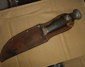1960 S Usa Kabar 17 Finger Groove Knife With Original Leather Sheath Ebay